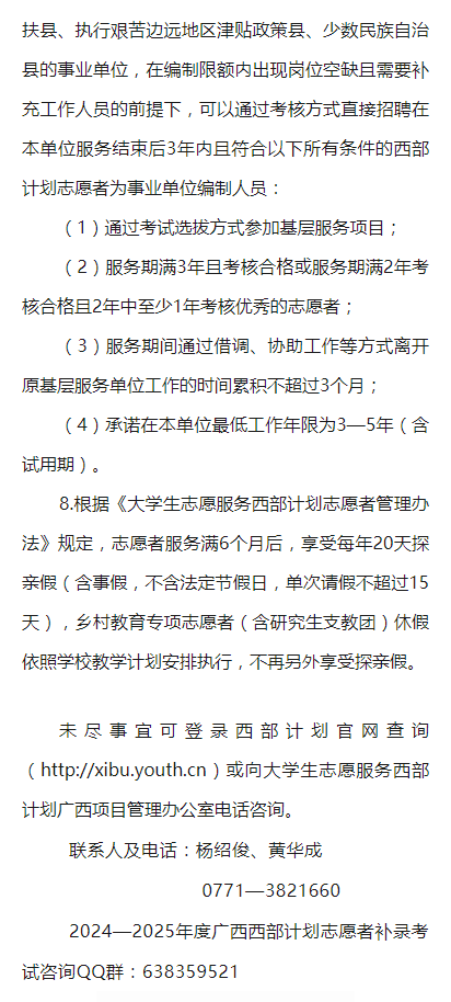 2024—2025年度廣西大學生志愿服務西部計劃補錄公告