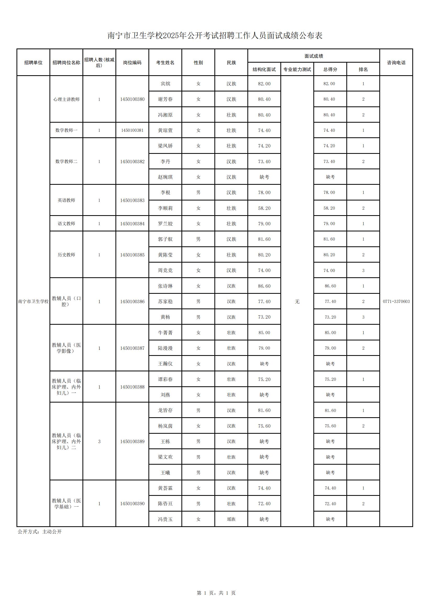 原文標(biāo)題:南寧市衛(wèi)生學(xué)校2025年公開考試招聘工作人員面試成績(jī)公布表