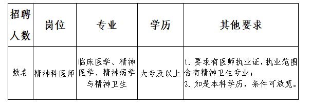 根據(jù)業(yè)務(wù)發(fā)展需要,持續(xù)加強(qiáng)我市心理健康和精神衛(wèi)生服務(wù)能力建設(shè),更好地滿足我市廣大人民群眾看病就醫(yī)需求,我院特面向社會公開招聘數(shù)名編制外聘用工作人員,現(xiàn)將有關(guān)事項公告如下: