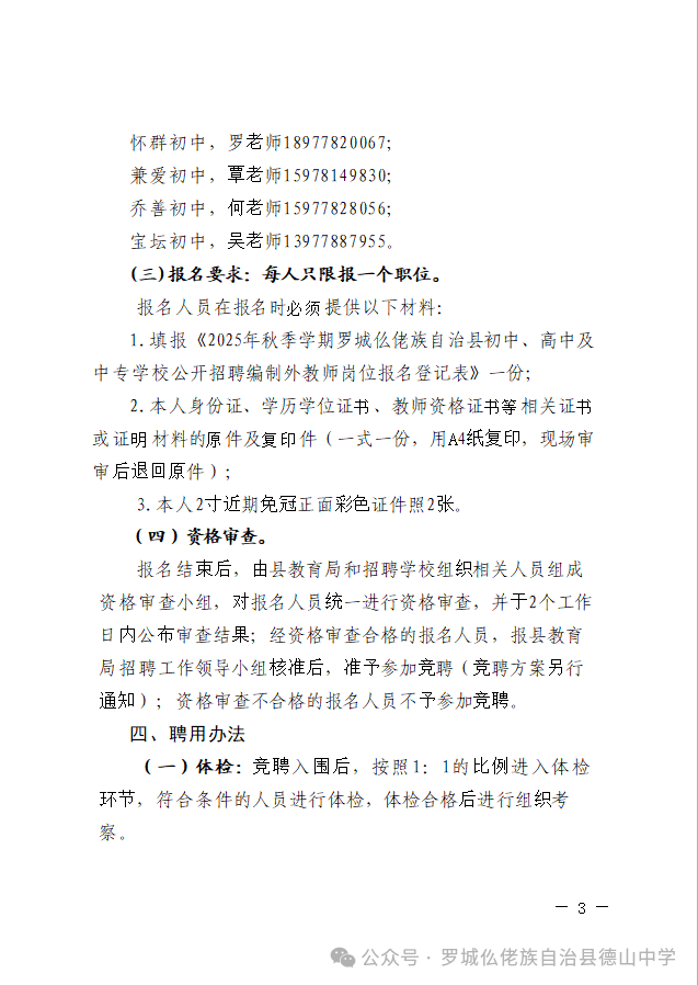 原文標題:羅城仫佬族自治縣2025年秋季學期初中、高中及中專學校公開招聘編制外教師工作的公告