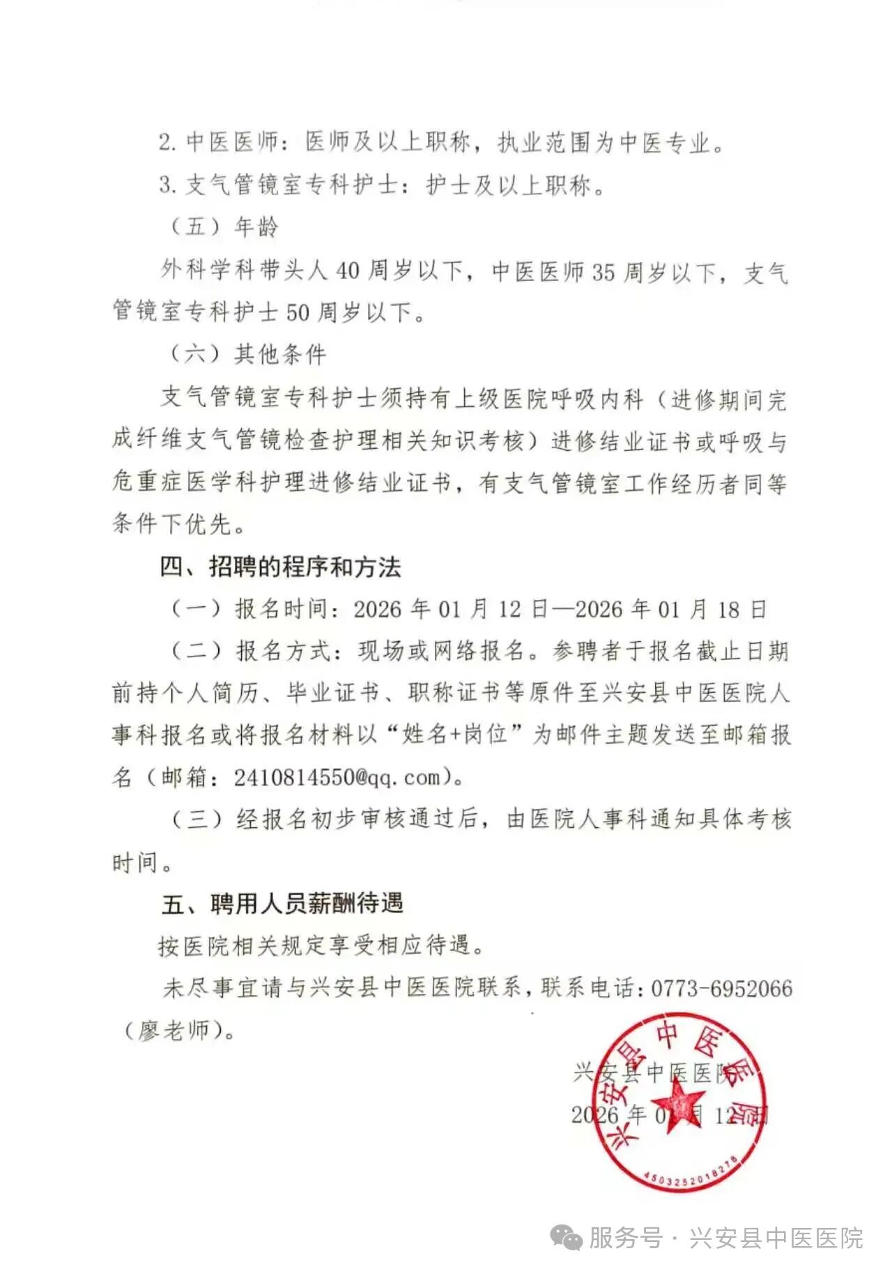 原文標題:2026年興安縣中醫(yī)醫(yī)院招聘醫(yī)護人員的公告